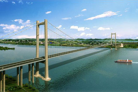 大沙水道橋為主跨1200米雙塔單跨鋼箱梁懸索橋。...
