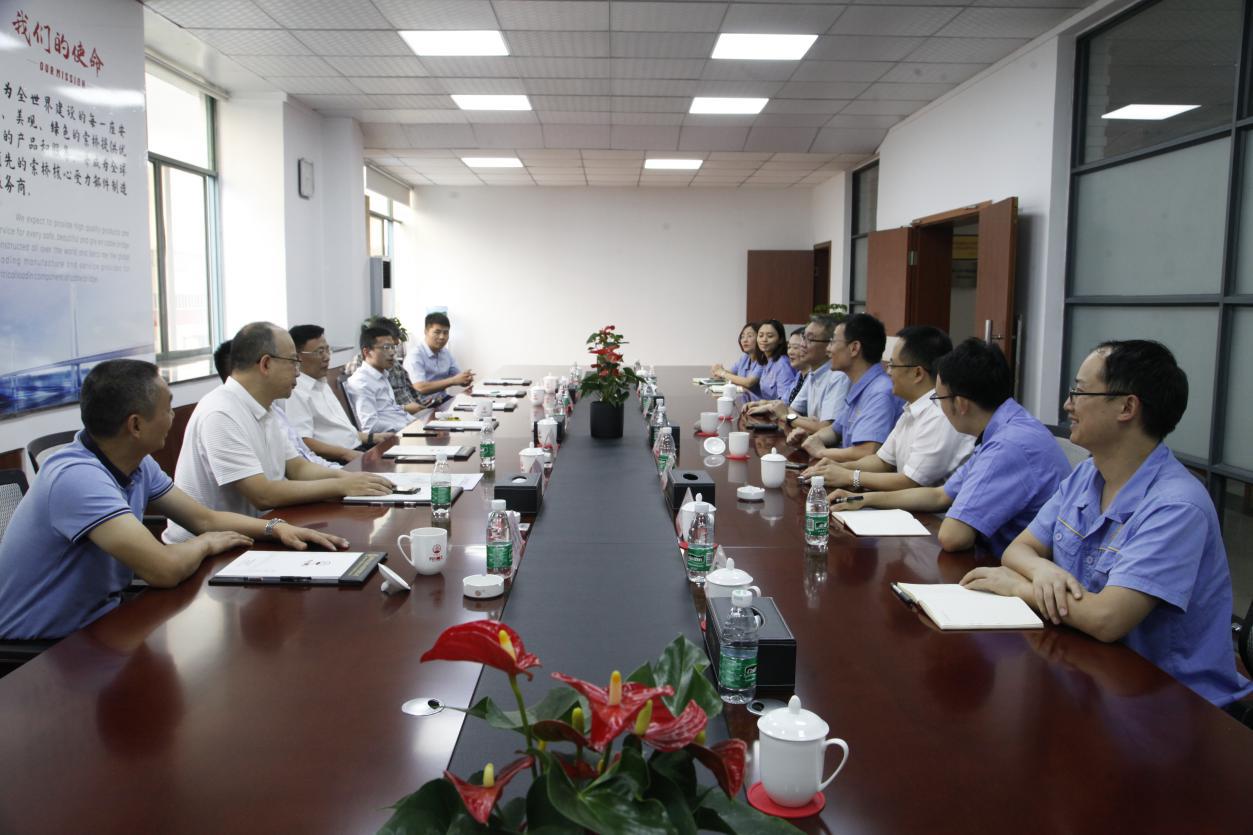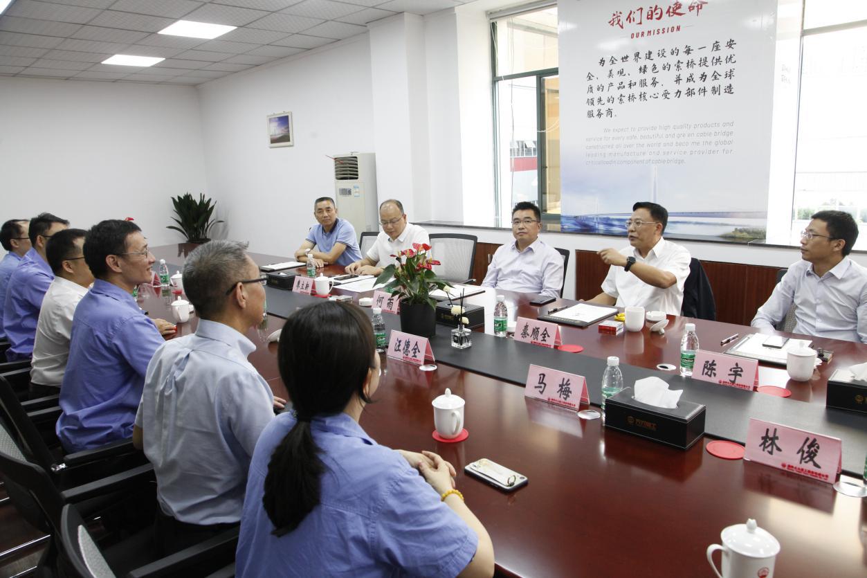 隨后,秦院士及各位領(lǐng)導(dǎo)在公司董事長的陪同下來到公司四樓會(huì)議室進(jìn)行了座談交流,座談會(huì)上,唐明董事長從公司的發(fā)展歷程、企業(yè)科研投入、技術(shù)研發(fā)創(chuàng)新情況、專業(yè)化工藝技術(shù)能力及生產(chǎn)制造能力建設(shè)、未來的發(fā)展規(guī)劃等方面,向秦院士及參會(huì)領(lǐng)導(dǎo)進(jìn)行了詳細(xì)的匯報(bào)介紹。秦院士表示多年前就對(duì)天元重工有所耳聞了解,但今天到企業(yè)實(shí)地參觀后感覺比較震撼,百聞不如一見,對(duì)企業(yè)留下了比較深刻的良好印象。院士對(duì)天元重工走專業(yè)化企業(yè)道路和未來的發(fā)展規(guī)劃表示充分的肯定,對(duì)企業(yè)的技術(shù)研發(fā)、科研創(chuàng)新、專業(yè)化制造生產(chǎn)、由傳統(tǒng)加工制造向數(shù)字化、智能化轉(zhuǎn)型等方面所做的工作及取得的成績給予了高度評(píng)價(jià),重點(diǎn)對(duì)企業(yè)的研發(fā)創(chuàng)新工作及后續(xù)的發(fā)展建設(shè)提出了非常獨(dú)到的指導(dǎo)意見。同時(shí),秦院士提出我國目前正在大力發(fā)展建設(shè)鐵路懸索橋,而鐵路懸索橋相對(duì)公路懸索橋而言,工況更復(fù)雜、建造技術(shù)難度更大,索鞍、索夾等受力部件產(chǎn)品的制造技術(shù)和質(zhì)量要求更高,目前中鐵大橋院也正在新設(shè)計(jì)幾座鐵路懸索橋和公鐵兩用懸索橋,歡迎天元重工積極參與其中與設(shè)計(jì)院多交流多探討,共同推進(jìn)中國鐵路懸索橋的建造技術(shù)水平和質(zhì)量水平的提高,為中國橋梁建設(shè)貢獻(xiàn)專業(yè)化企業(yè)的力量。
