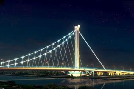 邵陽桂花大橋采用雙塔三跨自錨式懸索結構,主跨120米,全長541米,寬33.8米...