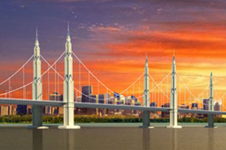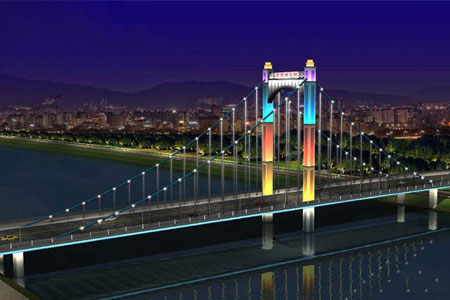 鄭州潮河大橋全長400米,是河南省第一座受力的三塔地錨式懸索橋,分四跨組成,橋面...